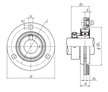 | 三螺栓法蘭式軸承座安裝單元,壓制鋼外殼,帶偏心鎖環,AELPF型 - 尺寸 | |