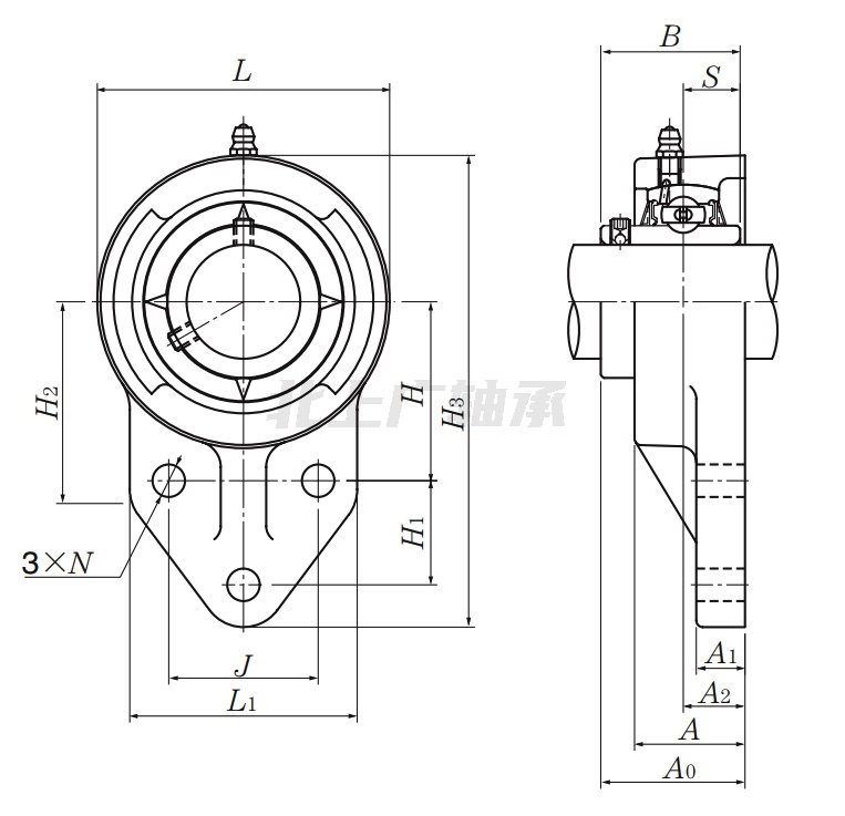 | 類型 | 三螺栓法蘭式軸承座 |