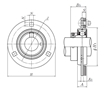 | 三螺栓法蘭式軸承座安裝單元,壓制鋼外殼,帶偏心鎖環(huán),JELPF型 - 尺寸 | |