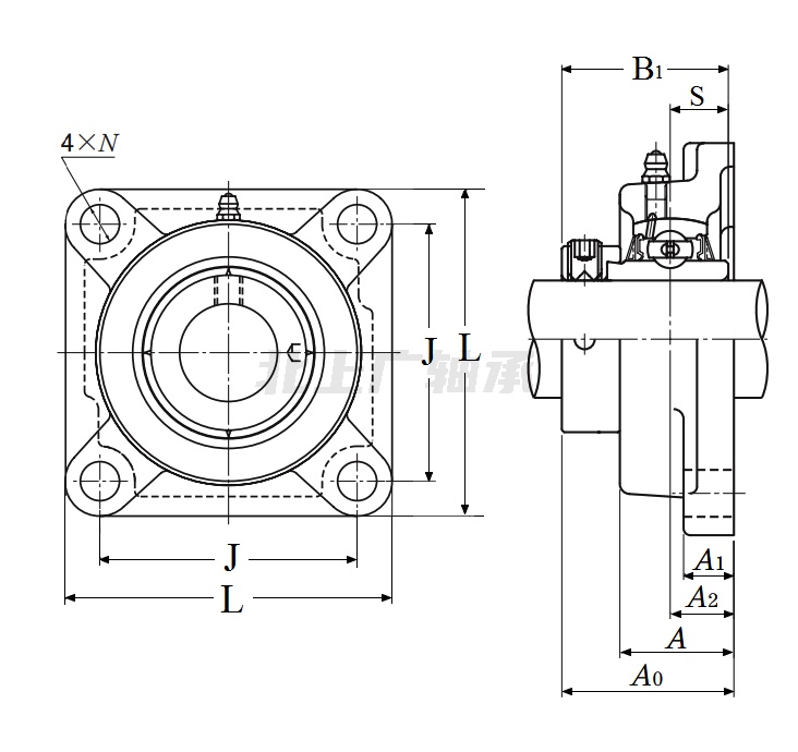 | 類型 | 四螺栓方形法蘭式軸承座 |