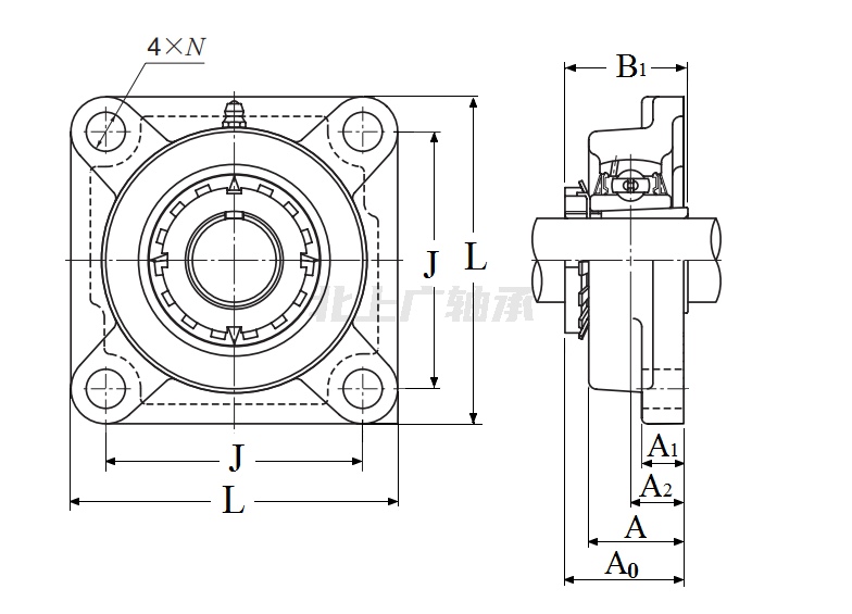 | 類型 | 四螺栓方形法蘭式軸承座 |