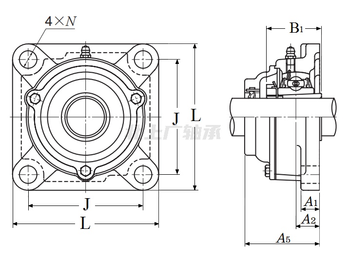 | 類型 | 四螺栓方形法蘭式軸承座 |