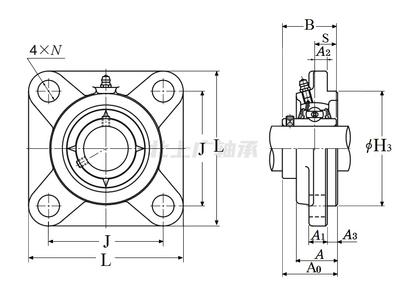 | 類型 | 四螺栓方形法蘭式軸承座 |