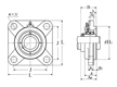 | 四螺栓方形法蘭式軸承座安裝單元,鑄造外殼,帶緊定螺釘,UCFS型 - 尺寸 | |