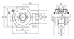 | 滑塊型軸承座,鑄造外殼,帶緊定套,壓制鋼蓋,開式,UKT型 - 尺寸 | |