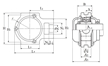 | 滑塊型軸承座,鑄造外殼,帶緊定螺釘,鑄造防塵蓋,封閉端蓋,UCT型 - 尺寸 | |