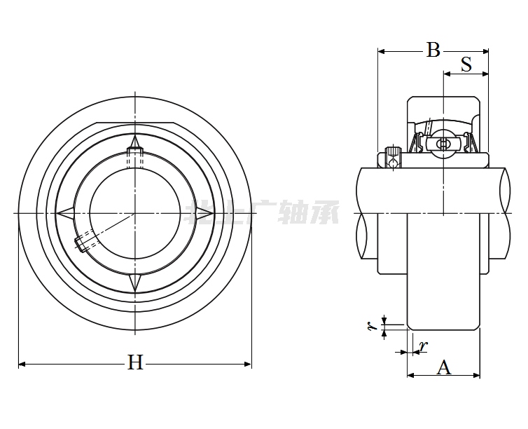 | 盒式單元,鑄造外殼,帶緊定螺釘,UCC型 - 尺寸 | |