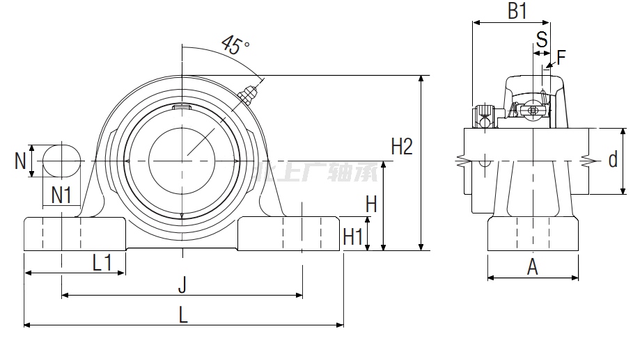 前綴列表:【U:外球面球軸承】【C:內圈內孔為圓柱孔,帶止動螺釘】【FL:菱形法蘭式軸承座】【U:窄型】【-:分隔符】