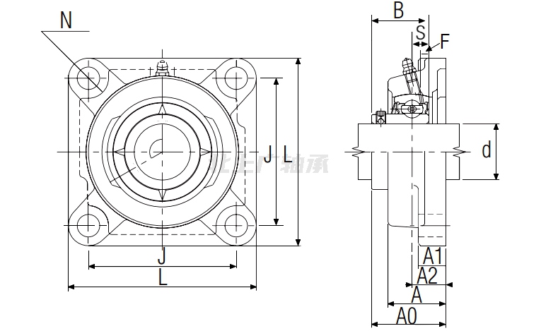 | 類型 | 四螺栓方形法蘭式軸承座 |