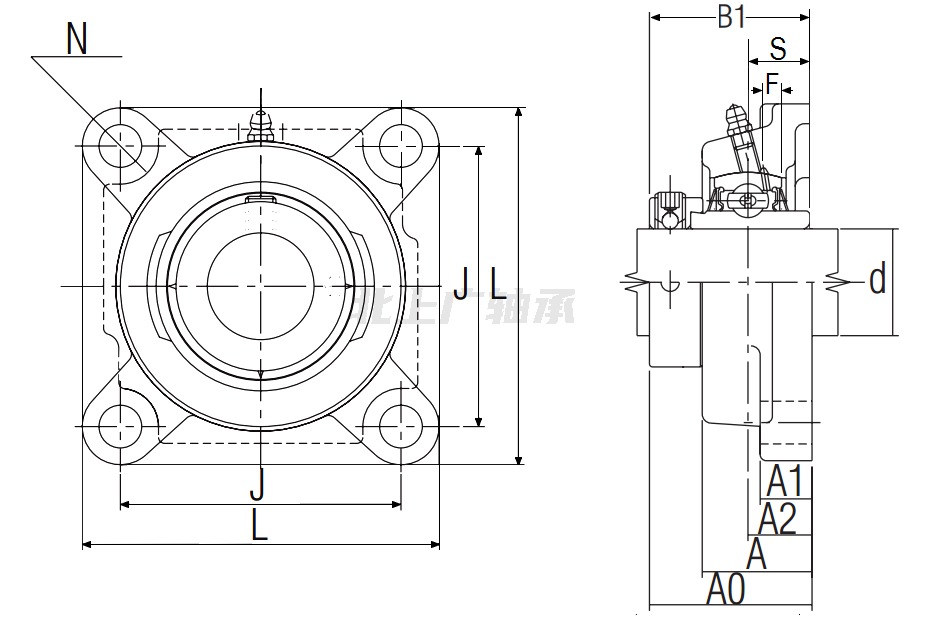 | 類型 | 四螺栓方形法蘭式軸承座 |