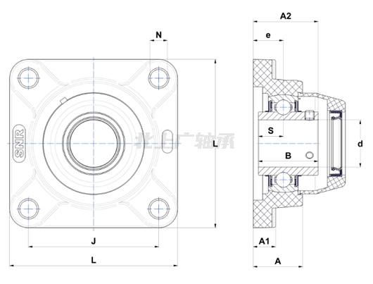 | 類型 | 四螺栓方形法蘭式軸承座 |