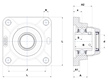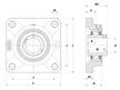 | 四螺栓方形法蘭式軸承座安裝單元,熱塑性外殼,帶緊定螺釘,SUCFPL型 - 尺寸 | |